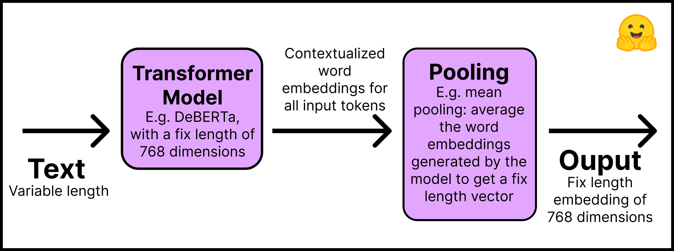 - Layer 2 - The embeddings go through a pooling layer to get a single fixed-length embedding for all the text. For example, mean pooling averages the embeddings generated by the model.